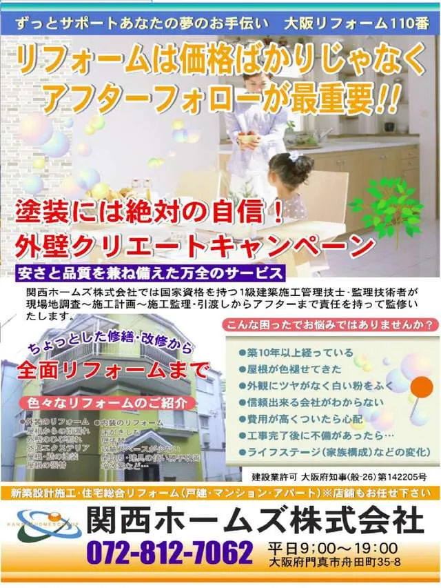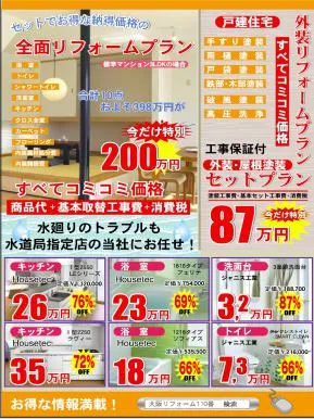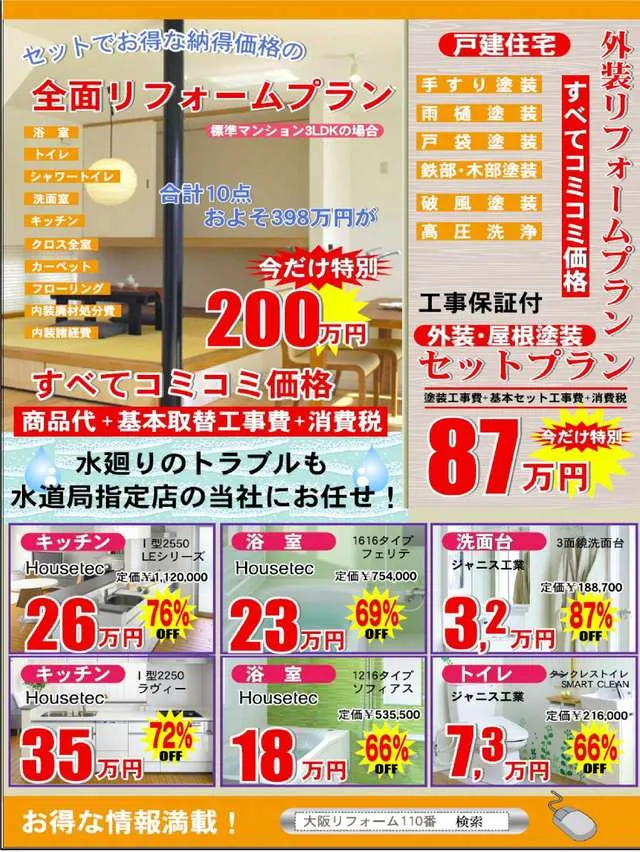 大阪全域のリフォーム工事! 安い! 高品質! 早い! 是非お問い合わせください!