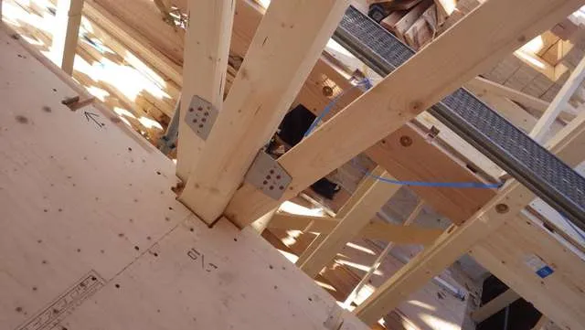 上棟大工工事を迅速を展開しながら耐震,構造金物を迅速に取付け施工していきます。