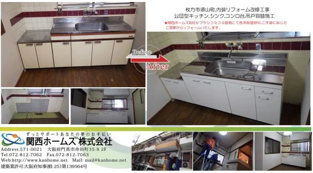京阪沿線枚方市,内装リフォーム,公団型キッチン,コンロ台取替施工,お任せください。