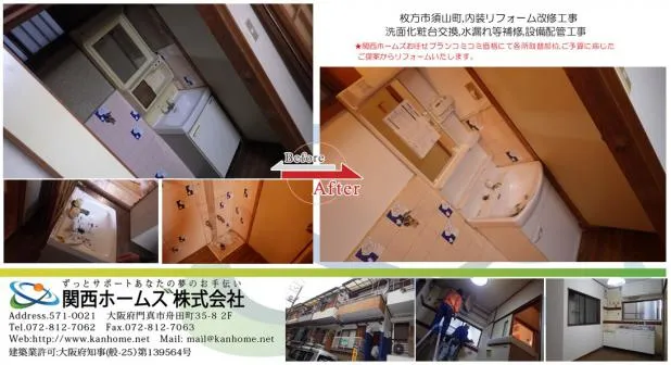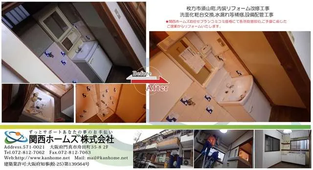 京阪沿線枚方市,内装リフォーム,水廻り,洗面化粧台,取替,改修工事お任せください。