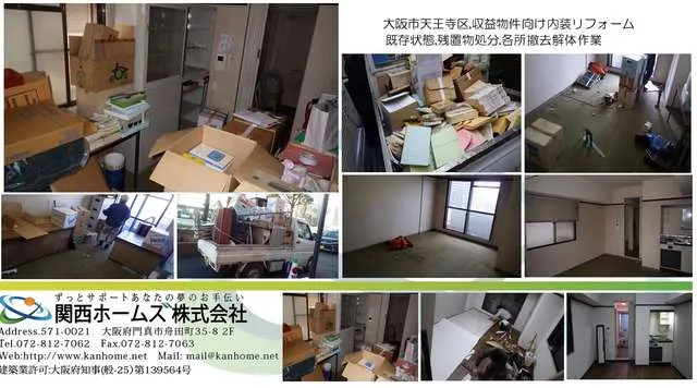 大阪市内,天王寺区,マンション内装リフォーム,清掃,洗浄,クリーニング処理お任せください。