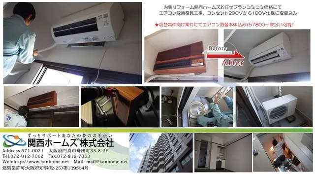 大阪市,関西ホームズ㈱,内装リフォームおまとめプランにてエアコン取替最安値です。