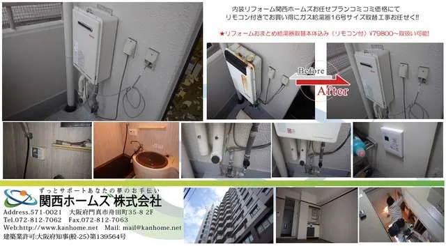 大阪市内,マンション内装リフォームおまとめプランにて,ガス給湯器取替工事お買い得に展開。