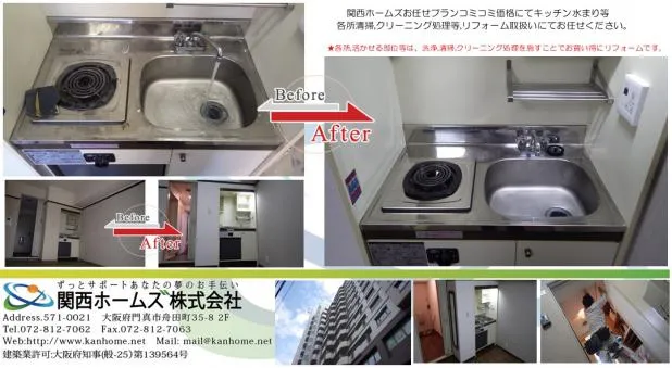 大阪市内,マンション内装リフォーム,水廻り,キッチン等,各所洗浄,清掃,クリーニングお任せください。