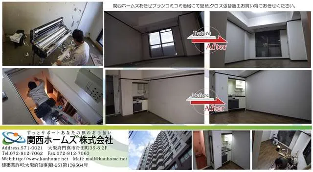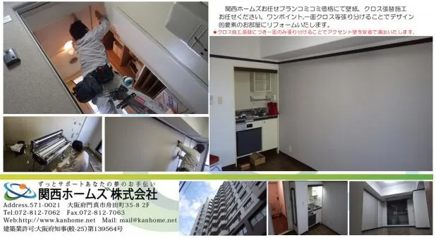 大阪で壁紙,クロス張替施工は,新築施工からリフォーム等,豊富な経験と施工実績の関西ホームズ㈱にお任せください。クロス張替等,内装リフォームを中心にお客様のお住まいや物件の事情等にコスト面も含めて最適なプランをご提案からさせていただきます。