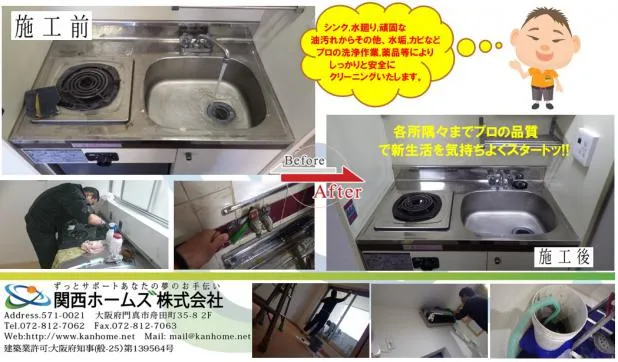 大阪でハウスクリーニングは関西ホームズお任せプランコミコミ価格¥22000~でお任せください。新築,中古、賃貸,収益物件等,各用途に応じたハウスクリーニング経験がございます。水廻りからお住まいまるごと,¥22000~取扱いしております。