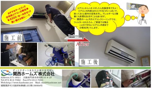 大阪で洗い工事 ハウスクリーニング,エアコンクリーニングは関西ホームズ株式会社にお任せ!