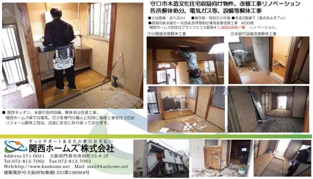 大阪で古家をリノベーション!リフォームで収益向上を! 関西ホームズ株式会社では様々なリフォームや新築を手掛けております。」お客様の納得がいくリフォーム・収益率を共に考えリフォーム計画を設計提案いたします。