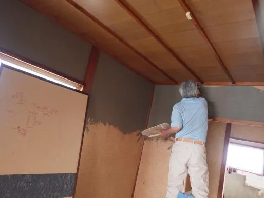土壁、寿楽壁左官下地処理より洋室仕様,クロス施工前下地施工です。