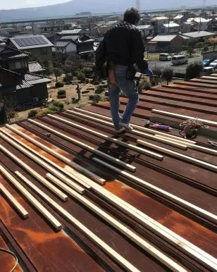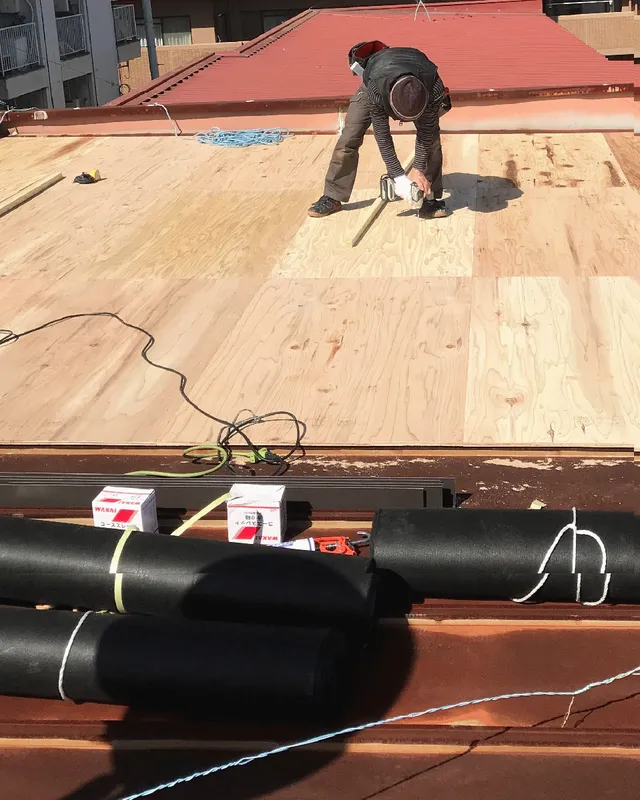 大阪府門真市にて屋根の葺き替え工事です。 屋根の下地から改修工事を致します。 現状の状態や形状から最適な工法を選定しリフォームいたします。