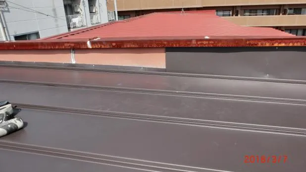 屋根全面構造合板下地・ガルバリウム鋼鈑屋根葺き替え・パラペット板金など