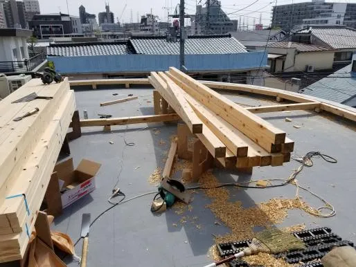屋上デッキ製作の為 先立って防水工事を致しました。