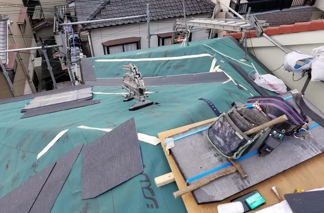 コロニアル(カラーベスト)に葺き替え工事中です。