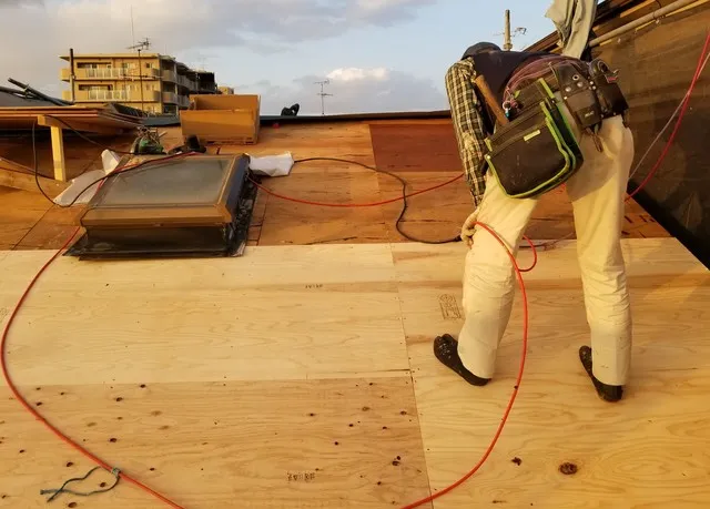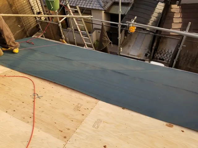 野地板上張り工事・コロニアル瓦葺き替え工事・足場4面工事・解体工事等々