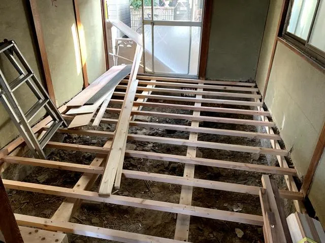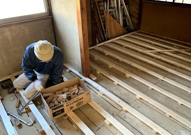 和室部分を洋間に変更する為、床上げを実施