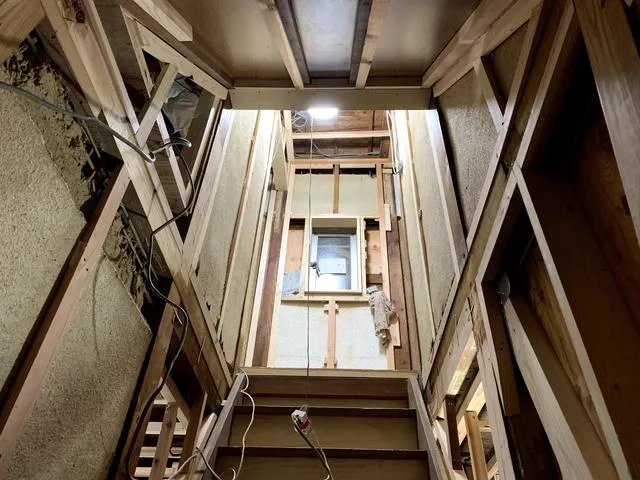 階段廻りの耐火ボード張り