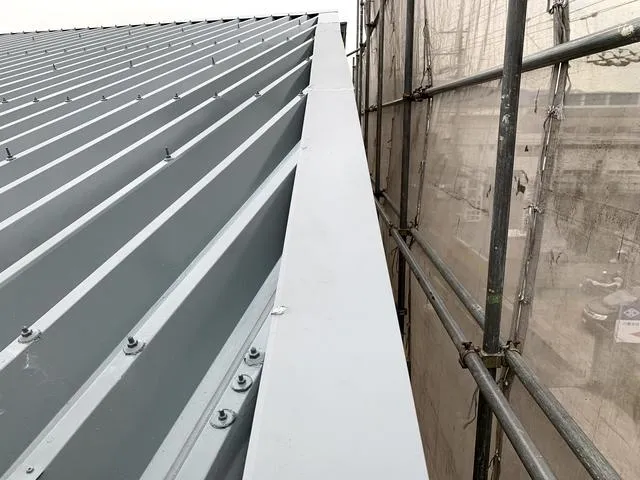 ケラバの板金が台風で飛ばされた状態です。 屋根塗装前です。