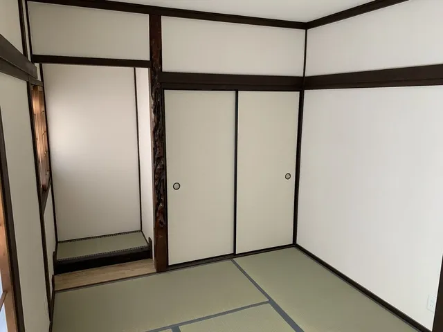 真壁和室の古い柱をオイルステン塗装致しました。 襖や畳は全て新調です。