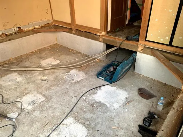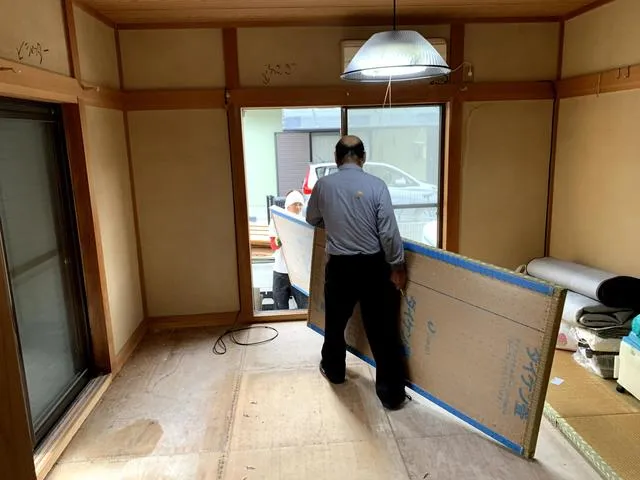 システムバス・洗面台・洗濯パン・散水栓位置換え・ガス管改修・給水管改修・基礎緊結金物新設・和室から洋間に変更・真壁から大壁に変更・窓塞ぎ・防水工事・外壁塗装・アルミサッシ交換・勝手口新設・倉庫シャッター新設・犬走(外周)モルタル打設・電気工事・クロス全面張替・床フロアータイル張り・ハウスクリーニング・その他
