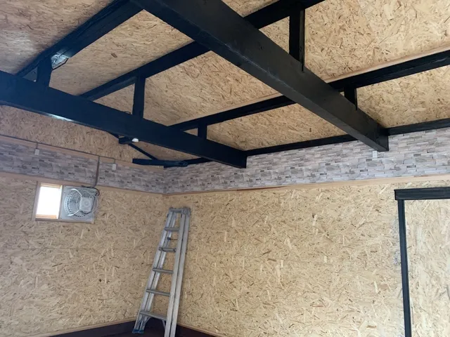 焼き板やその他面格子・軒天にはOSB合板などを施工しより良い建物になりました。