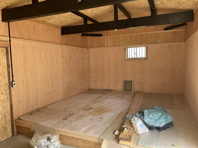 倉庫の三分の一を床上げを実施し使いやすく改修いたします。
