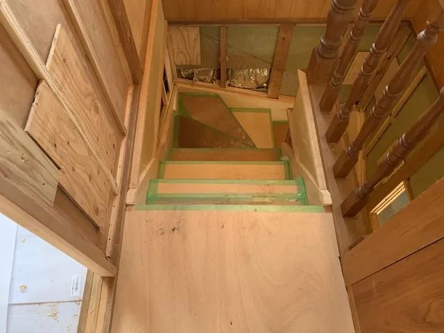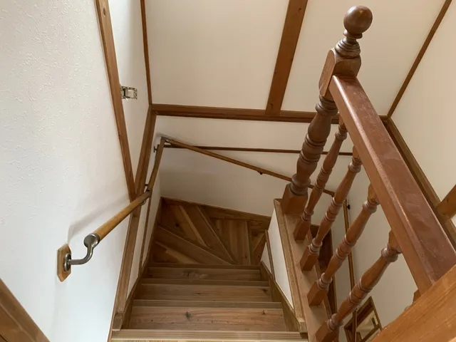 急で踏面の狭い既存階段を解体し昇降が楽な階段を造作工事にて新設致します。
