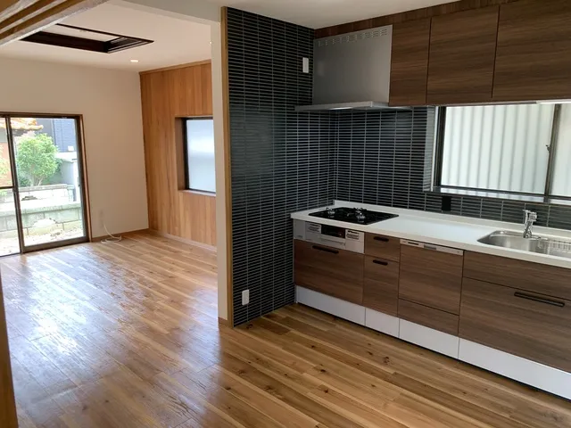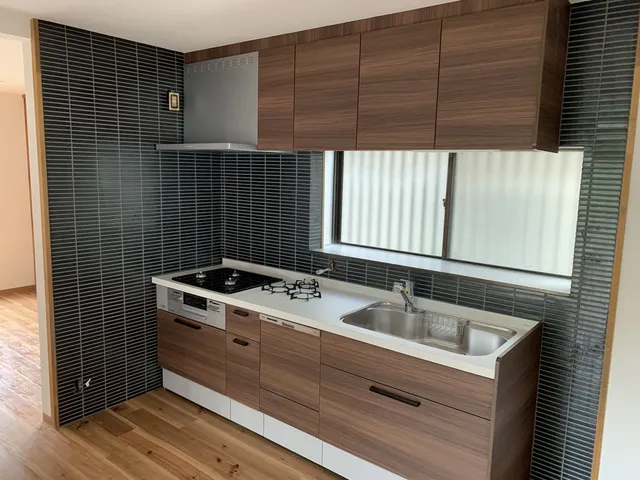 キッチンを新設・位置移動を施しタイル張りで仕上げました。