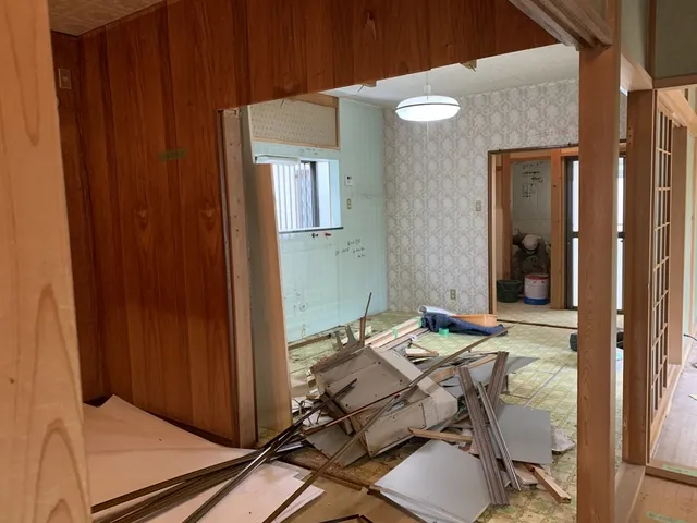 間取り改修・住宅設備新調・システムバス・システムキッチン・トイレ・洗面台・収納ボックス・建具新調・襖・フロアータイル・クッションフロア・クロス・階段架け替え・塗装工事・波板張り替え・畳新調・アルミサッシ新設・外構植栽の撤去・電気工事・設備工事・大工工事・ハウスクリーニング・その他