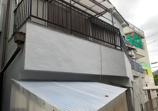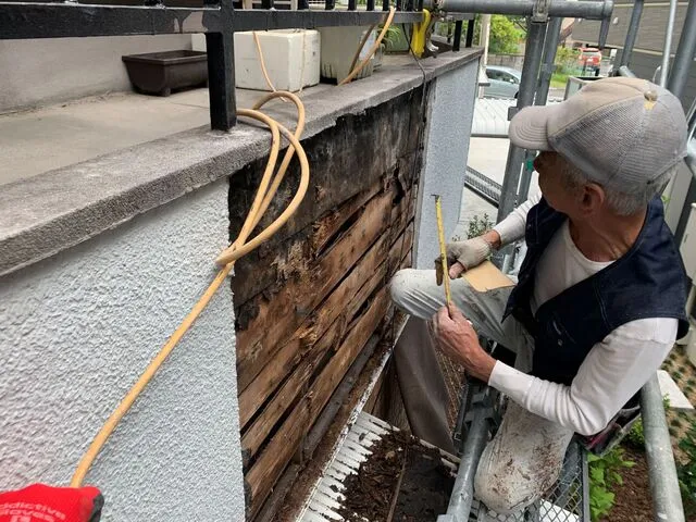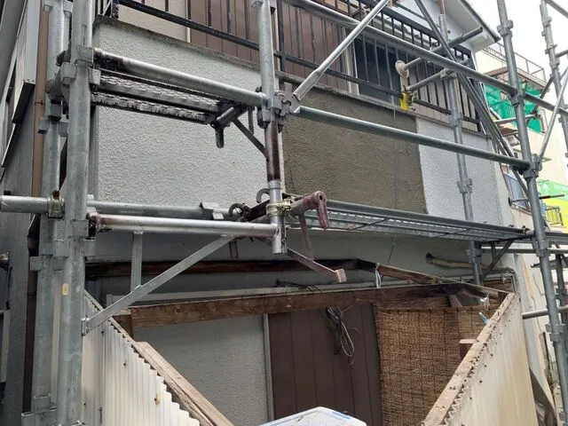 ベランダの外壁一部修繕・下地補強・外壁一部塗装工事・足場工事等