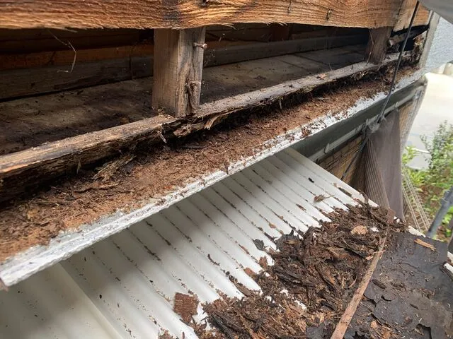 裏面のベランダから一階部分を全て塗装いたしました。これで外壁の不具合部分の修繕が完了致しました。塩ビ波板張替はサービスです。