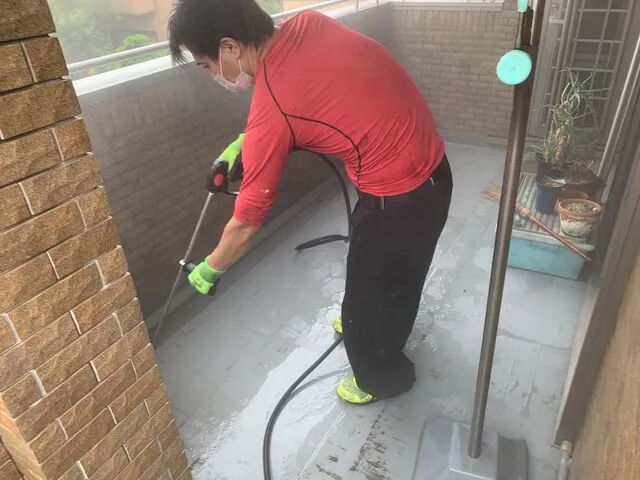 高圧洗浄を施し防水工事に着手