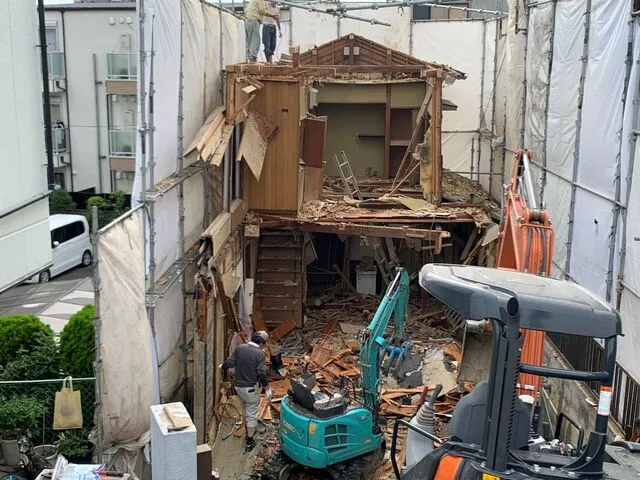 人力と重機による解体作業です。