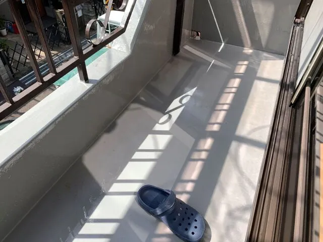 正面と裏面のベランダにウレタン防水工事を施しました。