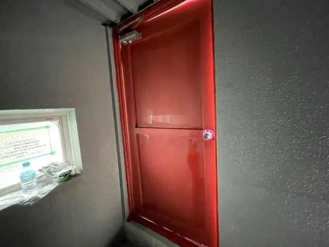 玄関サッシや勝手口のさび止め塗装。 仕上げはファインウレタンで塗装です。