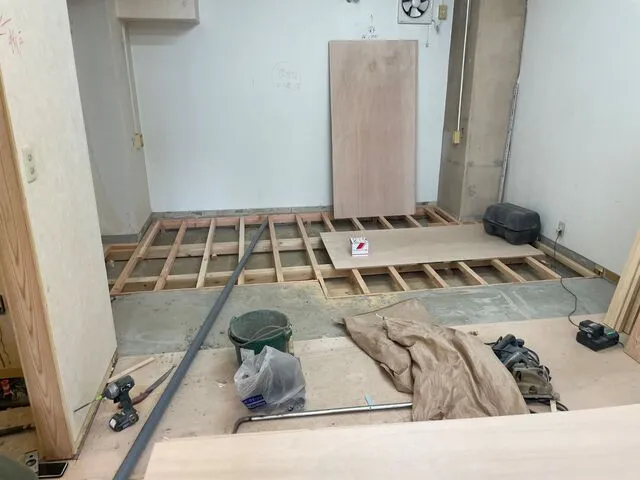 今回は置き床工法ではなく軸組工法で床上げを施しました。