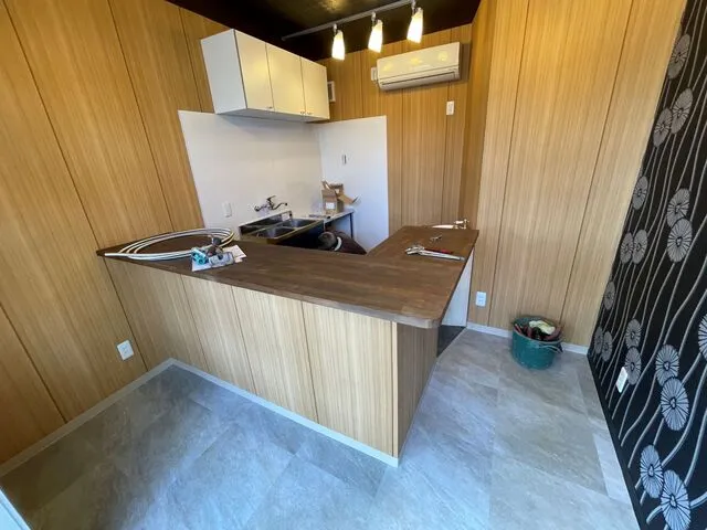 キッチンパネル張り・キッチン部の設備が完成!!