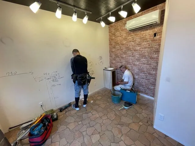 飲食店改修工事 カウンター・排水・給水工事・電気工事・大工工事・左官工事・床フロアータイル工事・クロス工事・塗装工事・その他