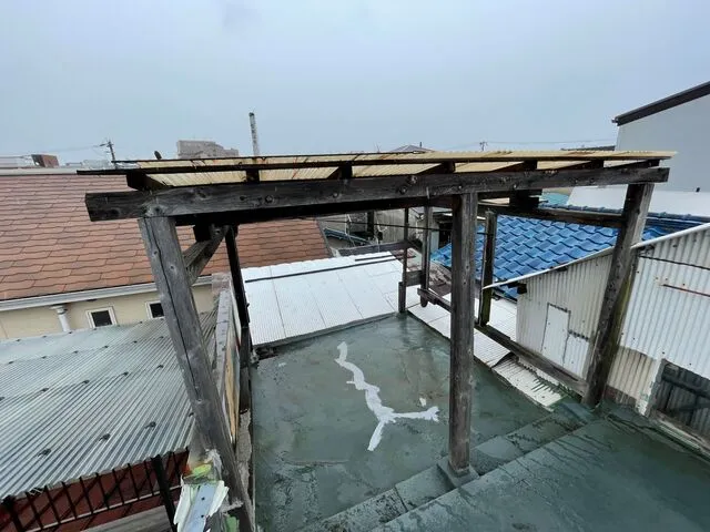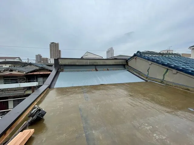 雨漏りしている屋上屋根面を解体し改修いたします。