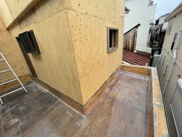 立ち上がりを施しドレンを改修・FRP防水で仕上げます。