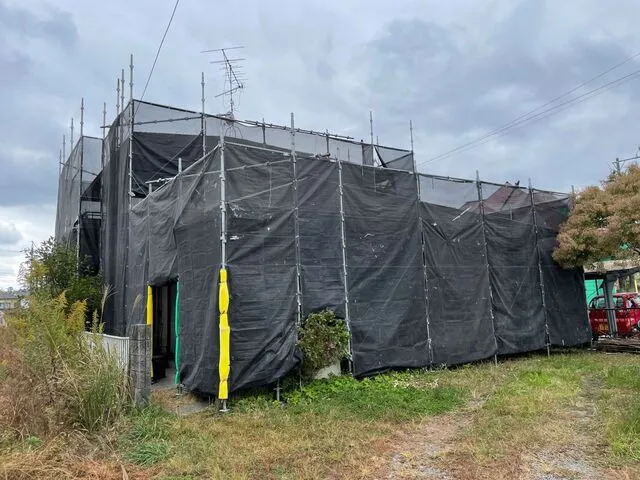 外壁、屋根塗装工事の為 全面に足場を施工!!
