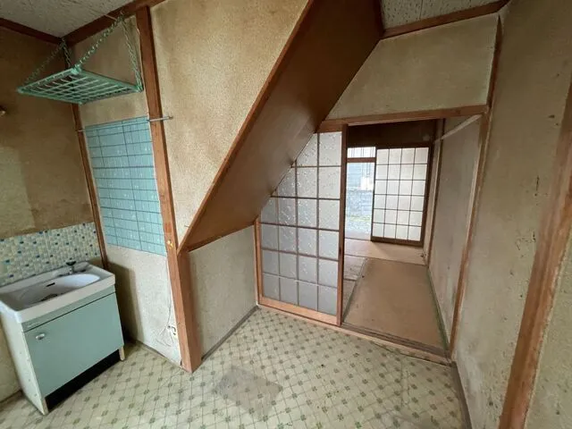 内部や玄関サッシの解体前 汲み取り式トイレの物件です。
