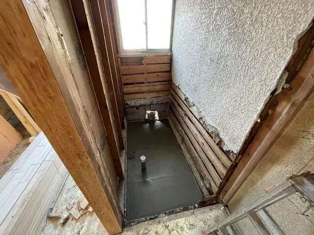 キッチン・浴室・洗面台・換気設備・給湯器・下水直結工事・トイレ新設・玄関サッシ新設・内装建具新設・玄関収納新設・外構ポーチ部改修・屋根瓦調整補修・外壁塗装・ベランダ防水・アンテナ工事・電気配線全面改修・給水排水管全面改修・内装木部塗装・裏土間スペース屋根新設・基礎部左官工事・照明新設(外灯・ダウンライト等)