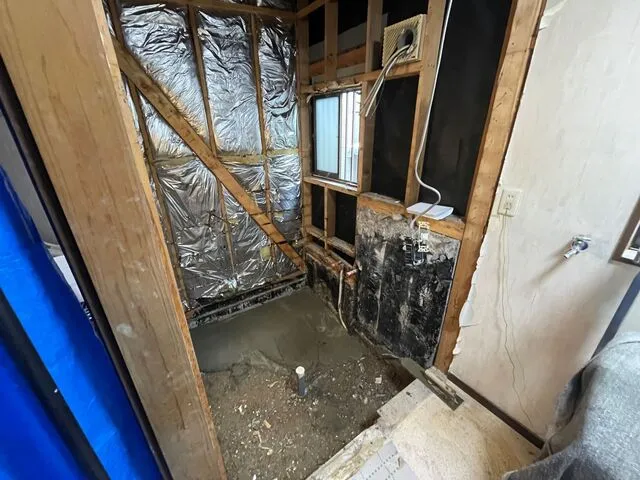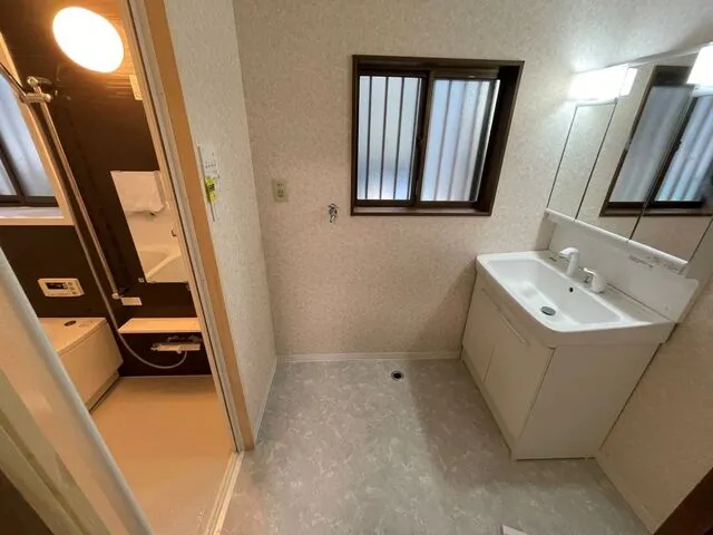 浴室改修工事(システムバスに変更)・洗面室床修繕・洗面台3面鏡交換・電気工事・設備配管工事・換気工事・クッションフロアー・クロス工事・解体工事・木軸構造修繕工事・その他