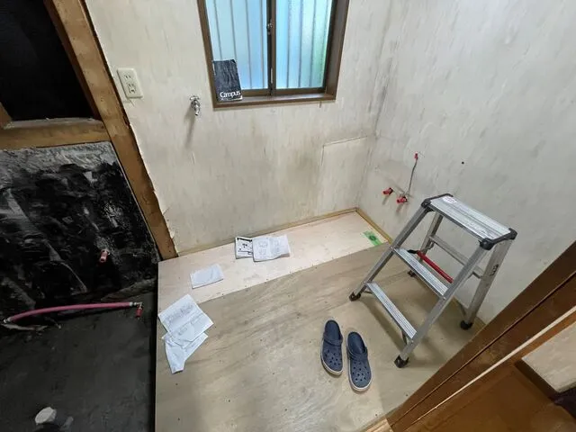 洗面室床補強合板工事