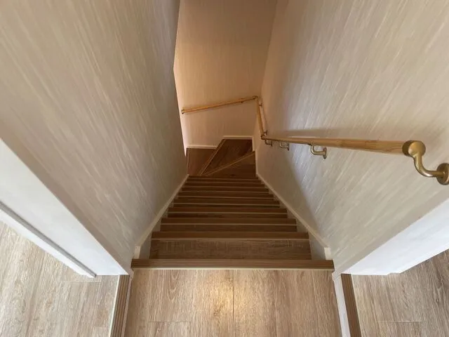 床面より階段の色を濃い目に設定 踏み外しの無いよう色を濃い目に致しました。