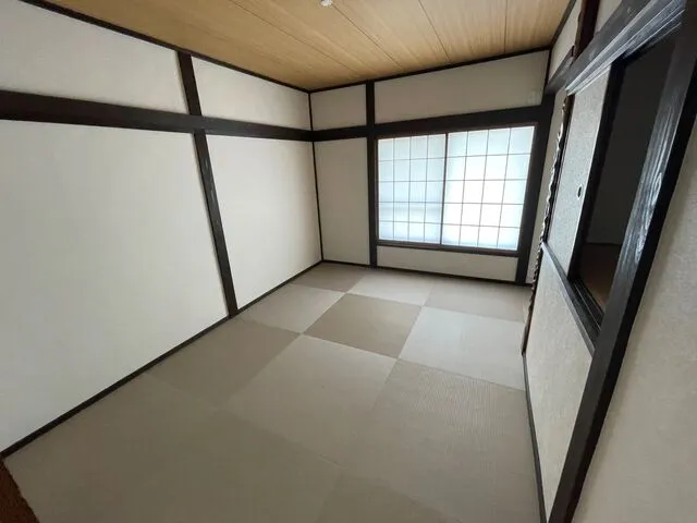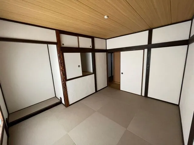 床は畳調フロアータイル仕上・天井クロス張り・木部塗装