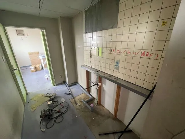 キッチン部・洗面新設に伴い設備を改修いたします。