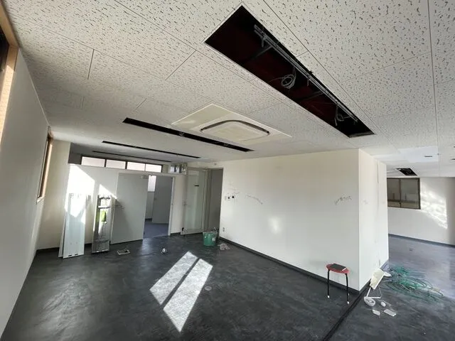 天井の照明等を撤去し新設致します。