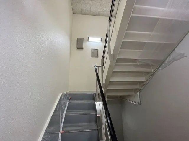階段ホールを明るい色で塗装致しました。