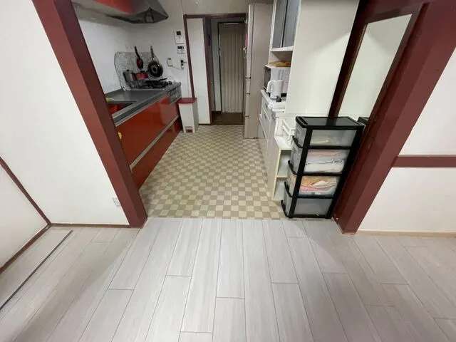 既存のキッチン床面との段差を無くしバリアフリー化